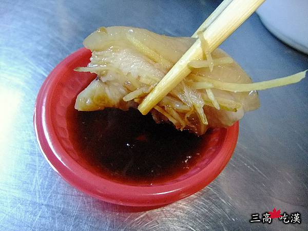 燉得QQ,尤其皮帶筋的部位,沾上一點兒辣的甜醬油膏再加上薑絲,