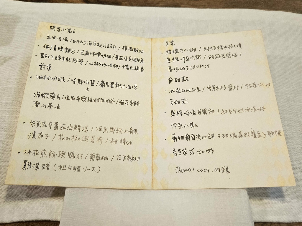 這次菜色以京都為主題(旅遊後的啟發?),現已有手寫菜單,餐廳內的Layout也調整過,