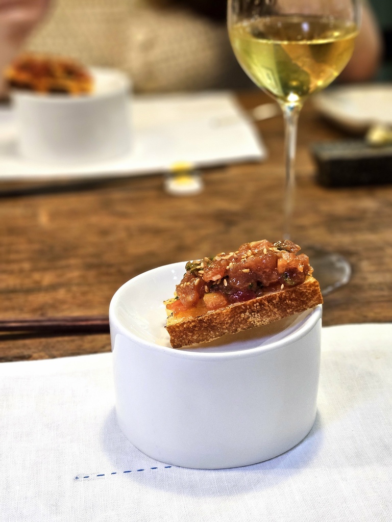 有點台日感,脆殼略嫌搶戲,總之開始搭一點白酒就對了。