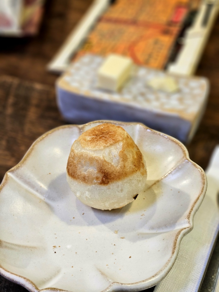 旁邊放的是明太子與海苔混合、軟中帶脆的起司圓片(加熱融煎後的那種口感),