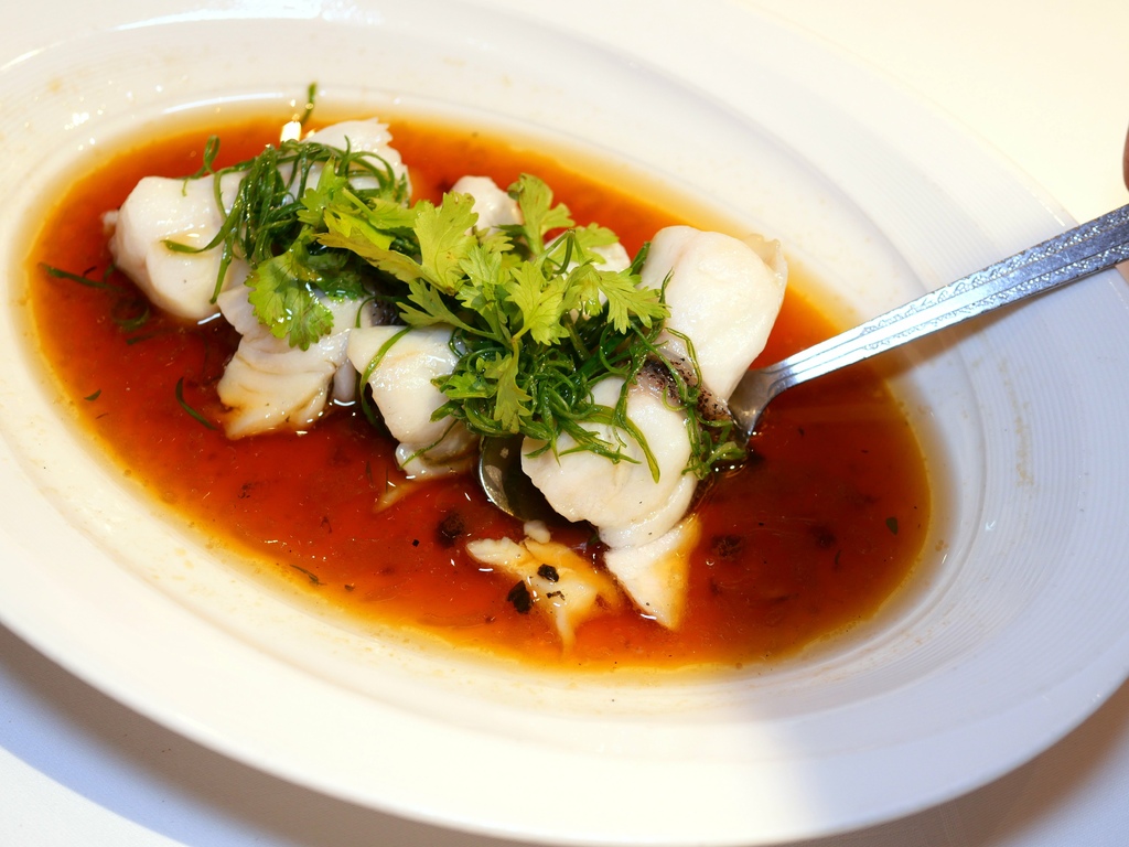 新菜梅干蒸星斑應該算是意外好吃,使用紅條蒸的火候可以,