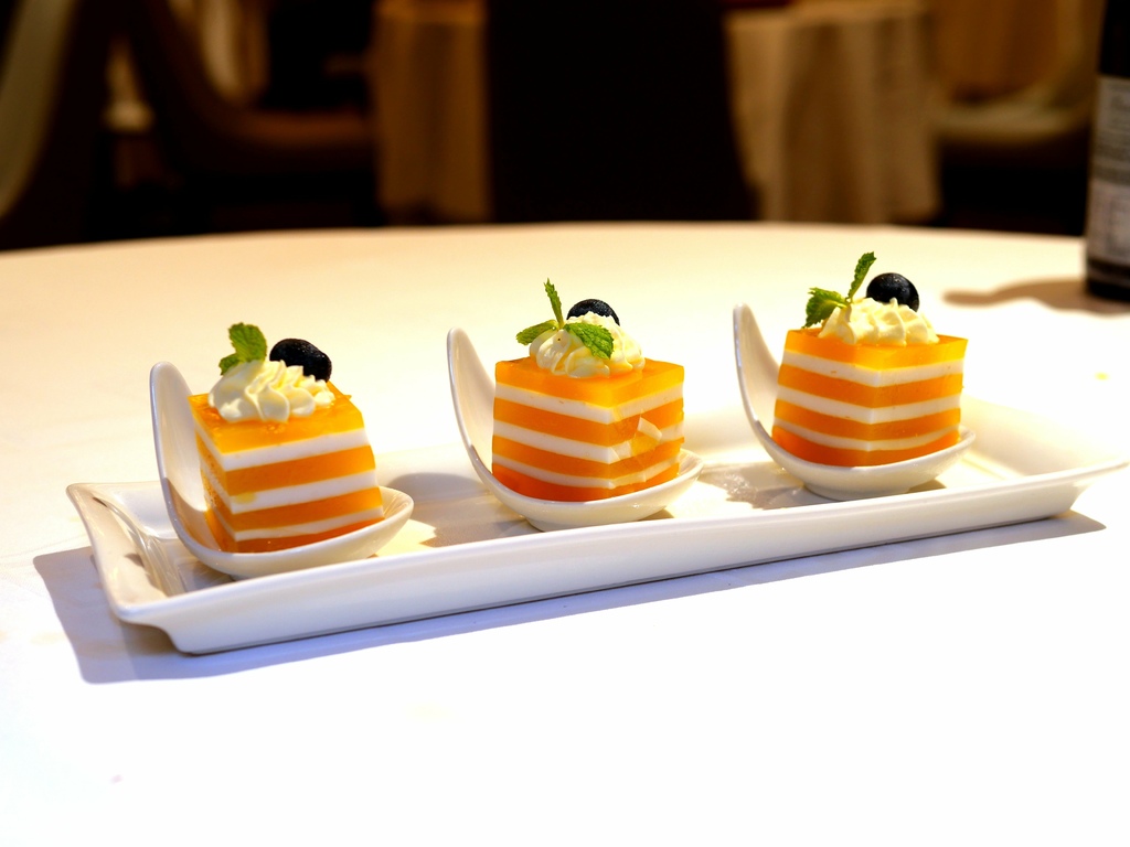 結尾的芒果椰子涼糕口味扎實,朋友特別指出上方的鮮奶油品質不錯。