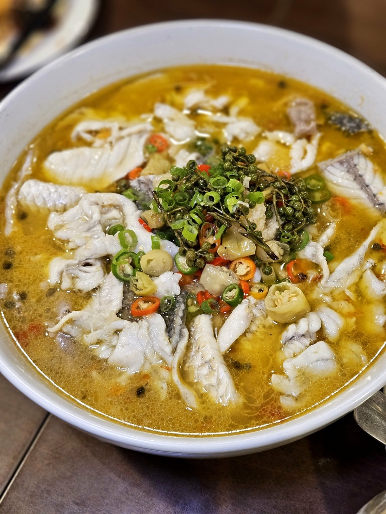 (藤香酸湯肥牛魚,初訪喜歡的菜,舒服的青花椒酸湯底,點這道就不須另外點湯了)