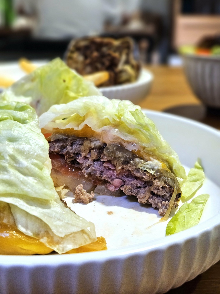 Stanly說當初會做漢堡是因為我跟他講的緣故,本來以為他在唬我,回去翻了一下幾年前對話訊息,嗯看來真是我的問題~疏忽了(實在是店太遠? 這不是來了嗎..💁♂️),認真覺得漢堡做得不錯,剛好這陣子掃了幾家饕客朋友間互相分享過的台北漢堡店(Comfort Burger、Triple T、Chubby、Mother Flippin..),這裡輸在賣相過於樸素,內涵倒是有水準的,最近一次過去先吃了顆生酮漢堡(生菜堡),相對清爽健康,當然比不上有麵包夾的開心。